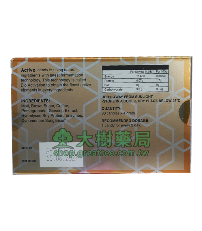 目前我們的大樹藥局已經與馬來西亞Acfive-Candy簽約,授權台灣大樹藥局直營銷售權。在台灣地區,您可以直接到大樹藥局購買正品悍馬糖 Acfive-Candy 黃金糖,也可以通過大樹藥局的線上購買直接配送到家,貨到付款。這對於平時比較忙的民眾購買非常方便。