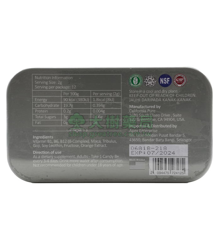 主要成分:柑橘精華、瑪卡、蒺藜、枸杞、大豆卵磷脂