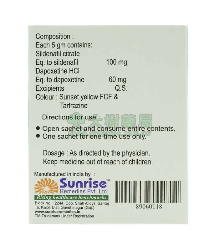 【成分】每包含100mg西地那非(威而鋼)+60mg達泊西丁(必利勁)