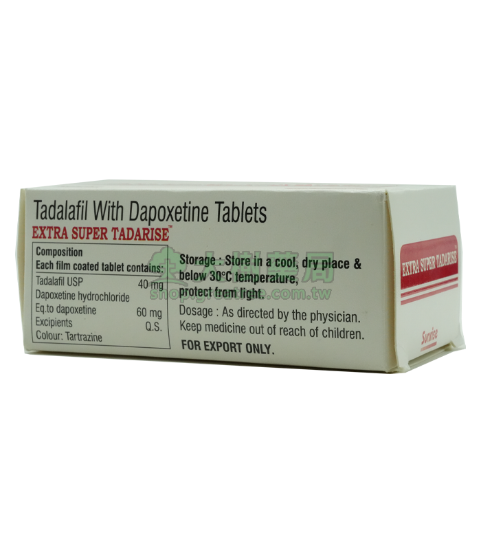 雙效犀利士(Super Tadarise)是一種治療陽痿(ED)和早洩(PE)的藥物,它具有兩種不同成分的組合,可以同時作用於改善勃起功能和控制射精。具體來說,它包括犀利士(Tadalafil)和必利勁(Dapoxetine)這兩個成分,具有以下作用: