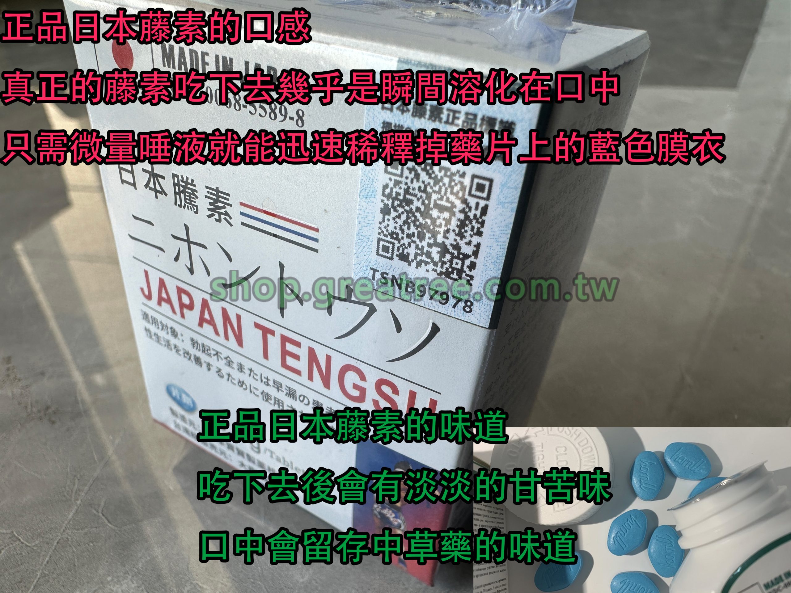 正品的藤素吃了一顆後,效果會立即顯現。基本上,所有從大樹藥局出售的藤素,沒有一個人說它不好用的。正品的藤素味道苦澀,略帶中藥甘草味!它的效果必須是非常好的!